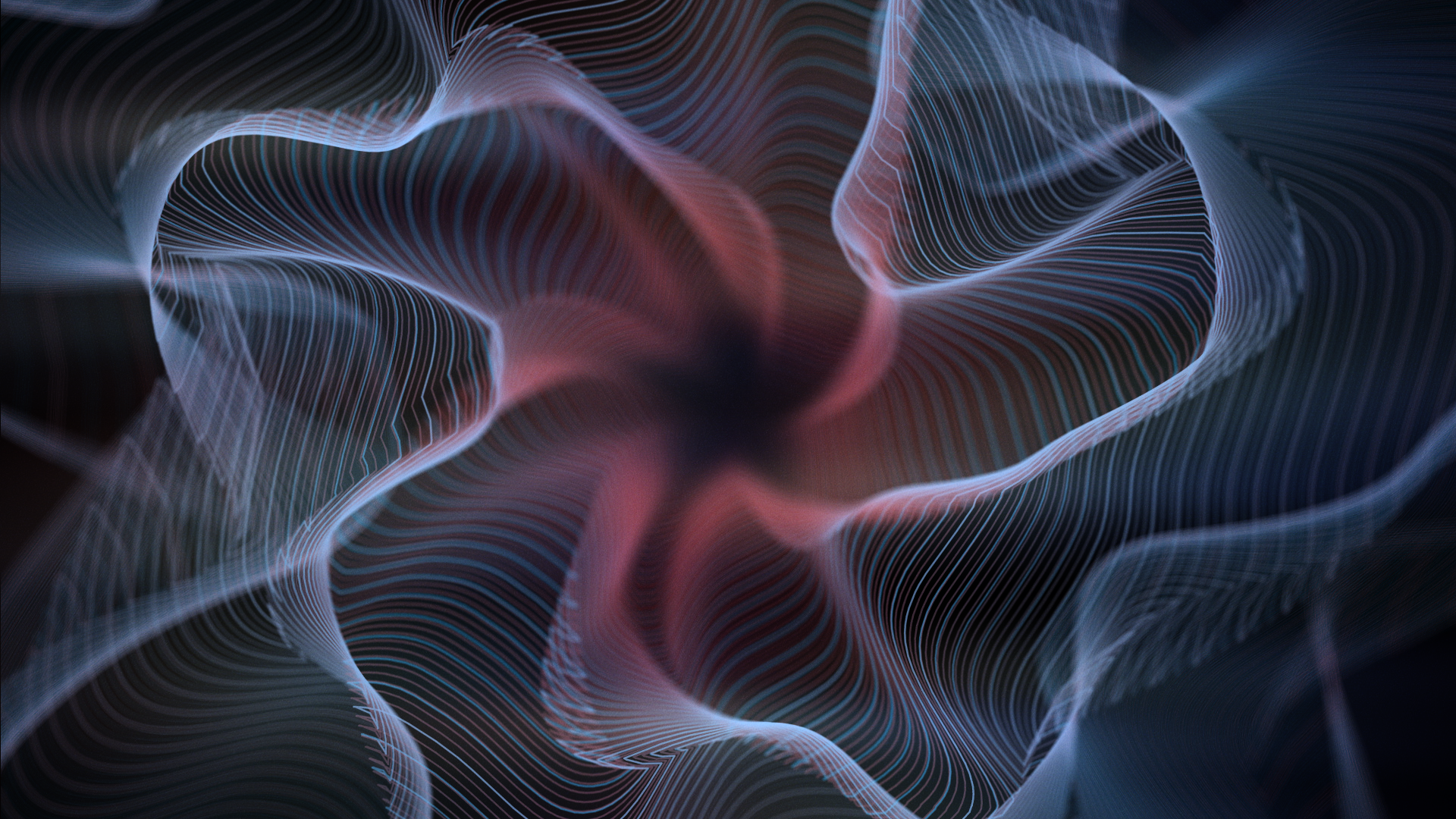 The plugin creates elegant geometric shapes in 3D space. It's akin to a particle system but instead of rendering small particles all over the place, it generates vector like shapes (waves) that change over time much like the classic Radiowaves plug-in. It renders hundreds of thousands of high frequency waves and can be rendered to create a multitude of styles.